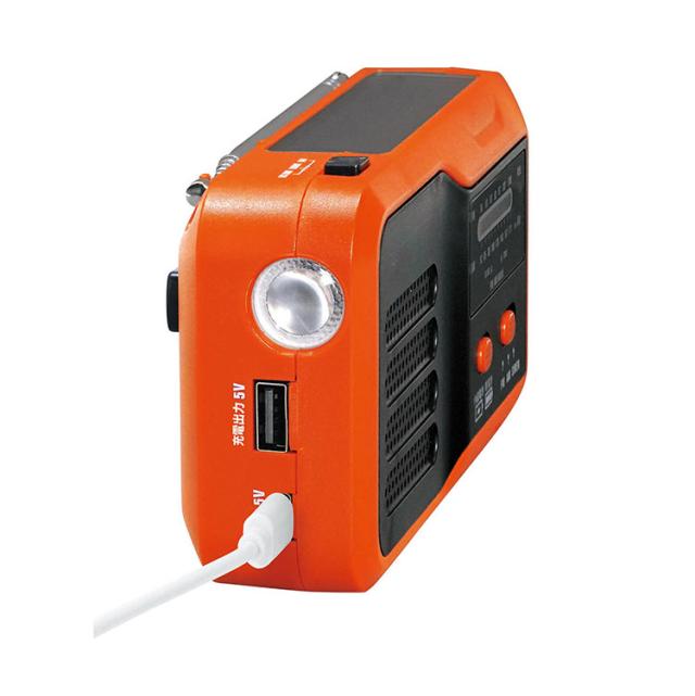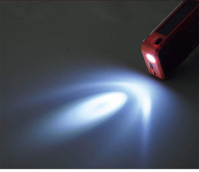 LEDライト、AM・FMラジオ(ワイドFM対応)、大音量サイレン、ソーラー充電、手回し充電