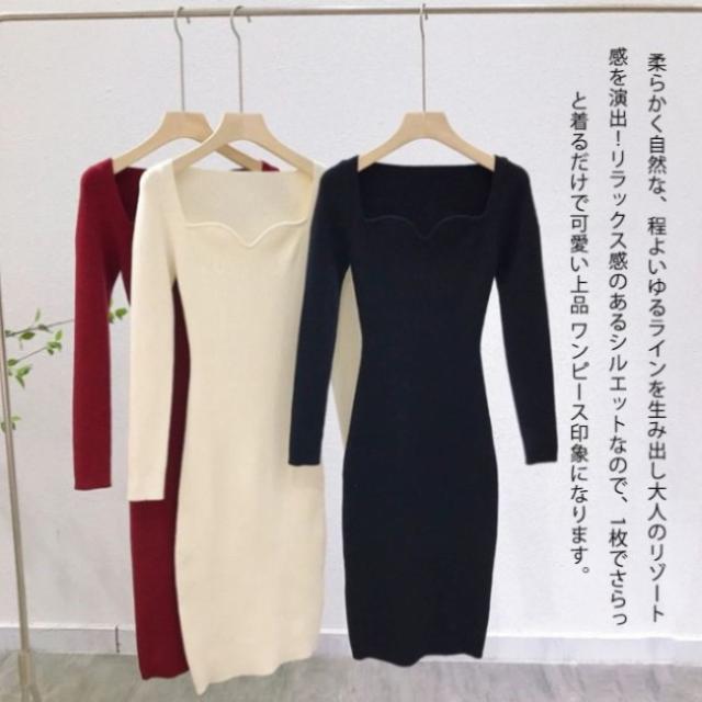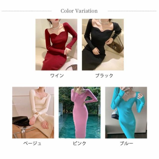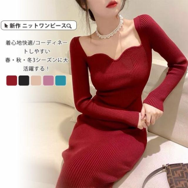 ニットワンピース レディース タイトワンピース ロングワンピース スカート 長袖 胸元 開き セクシー かわいい オシャレ ボディコン きれいめ
