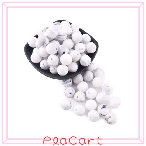 Promise Babe シリコンビーズ マーブル 15mm/50個 丸いビーズ 水洗い 煮沸消毒可能 手芸用品 アクセサリーパーツ 手作り用品