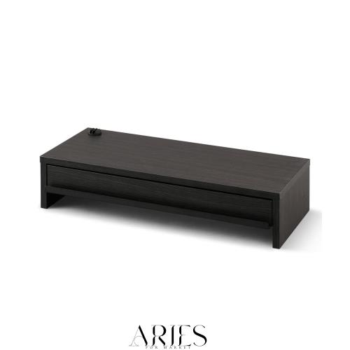 ◆商品名:アイリスオーヤマ デスクがスッキリするモニター台 幅59cm 引出し付き ブラック 収納領域の大きなワイド設計 目線が上がるので首肩の負担