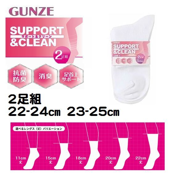 2足組 白ソックス レディース ソックス 靴下 通勤 通学 スポーツ 仕事 スクールソックス 婦人 学生用 靴下消臭 抗菌防臭 綿混 グンゼ 0802 0842