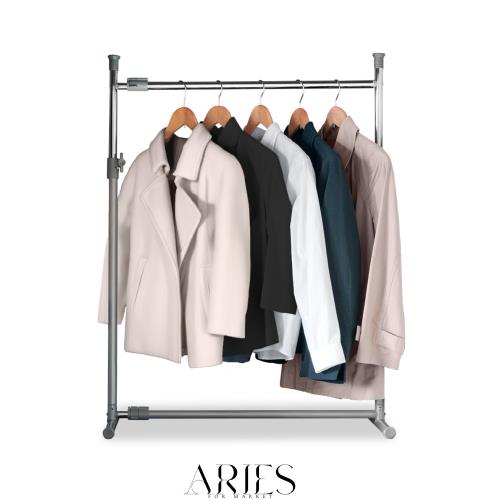押し入れ上段にピッタリサイズで、縦・横どちらでも設置可能です。クローゼットでも使うことができます。 パイプを傷つけずにしっかりと固定する高さ調節ストッパーとワンタッチでスライドできる左右調節ストッパーが付いています。また転倒防止機能付きです。 ジャケットなら最大20着、シャツ・ブラウスなら最大25着収納可能です。