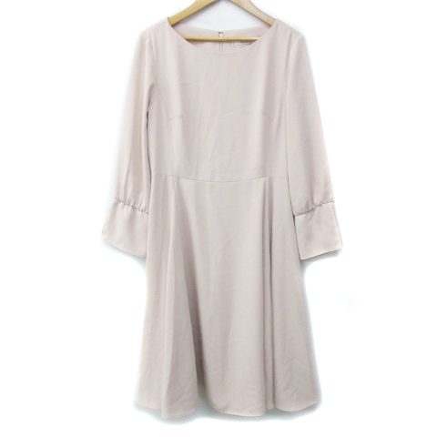 【中古】ルージュヴィフ フレアワンピース ミモレ丈 長袖 ラウンドネック 無地 38 M ベージュ /FF14 レディース