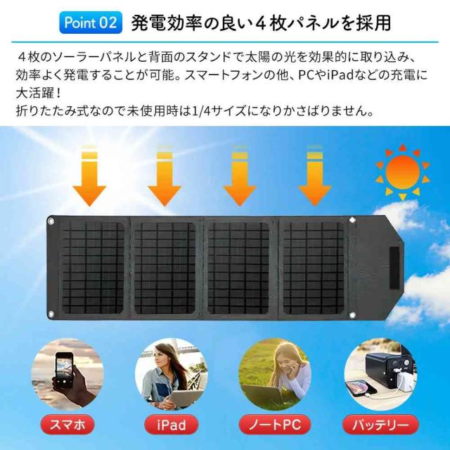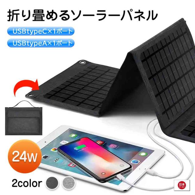 ソーラーパネル 持ち運び 24W 合計2ポート USB1ポート USB type-C1ポート 合計24w-30w出力 スタンド付き かしこく充電 iPhone iPad Apple Watch android 防災 アウトドア 送料無料