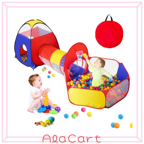 キッズテント ボールハウス ボールプール トンネル付き 子供テント アウトドア テントハウス 3点セット ワンタッチ 折り畳み式 折りたた