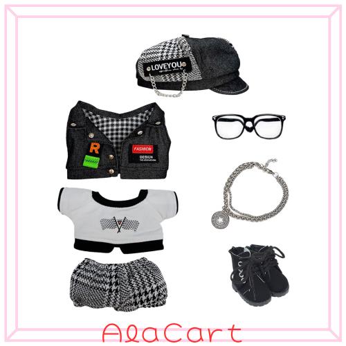niannyyhouse 15cm ぬいぐるみ 服 帽子 ベスト Tシャツ 半ズボン メガネ ネックレス 靴 ルーズ 綿人形服 着せ替え (Black, 15