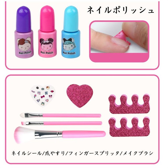 リップグロス x6 パール系アイシャドウバーム×6個 チークバーム×6 リップスティック×1 リップオイル×1 グリッター×2 水溶性フィンガーカラー×3 ネイルアートシール×1枚 ネイル×1 フィンガーセパレーター×2 メイクアップブラシ×3