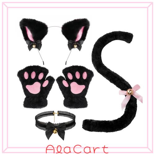 【豪華な4点セット】猫耳カチューシャ、肉球手袋、尻尾、チョーカーが豪華な4点揃いて、猫 コスプレの小物に不可欠なアイテムです