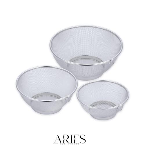 シンプルで、清潔なザルのお買い得な3点セットです。 各サイズ毎にペアで重ねて使え、収納時はきれいに3点が重なるので 使い勝手も収納もバッチリ!軽くて普段使いにオススメのセットです。 大中小(18、21、24cm)3サイズずつあるので毎日の料理に多用途で使え、重宝すること間違いなし。