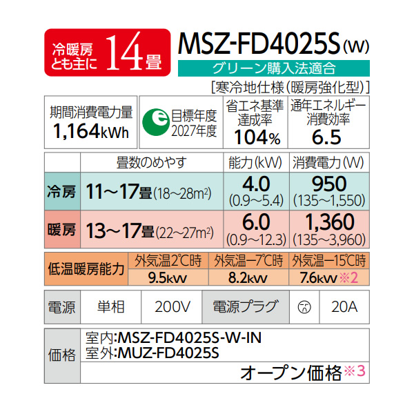 メーカー型番:MSZ-FD4025S-W