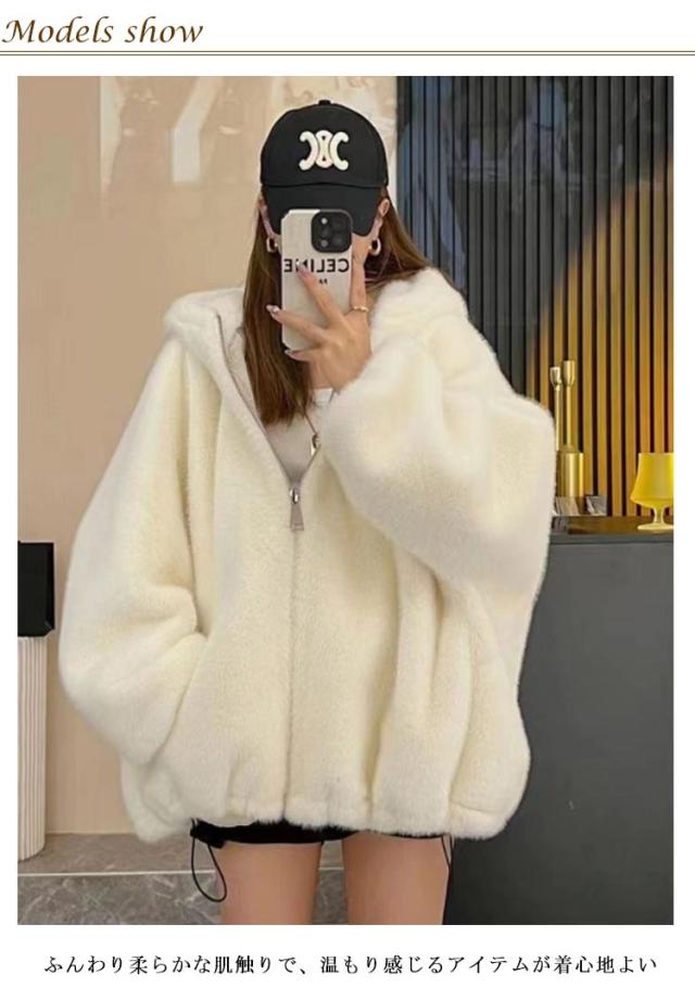 モコモココート ファーコート 冬 フード付き 冬アウター 秋 レディース エコファー ボアパーカー ジャケット モコモコ コート ブルゾン ふわふわ オーバーサイズ ゆったり 防寒 フェイクファーコート 暖かい もこもこ アウター カジュアル おしゃれ 冬 羽織