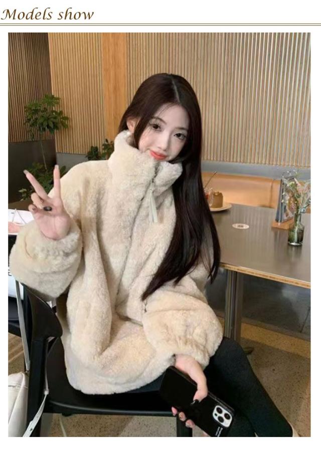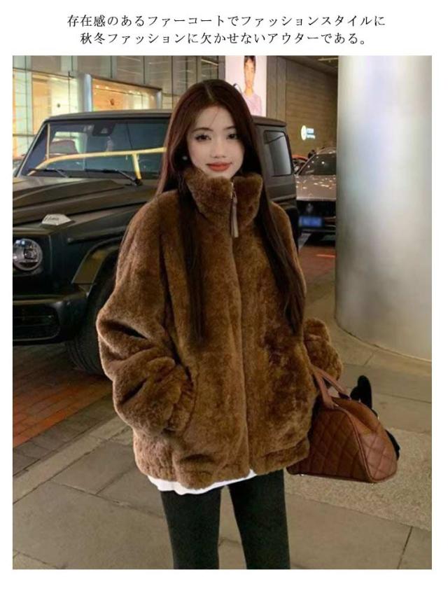 もこもこ フードなし 毛皮コート ファーコート ふわふわ ブルゾン フェイクファー アウター 冬 ノーカラー エコファー 長袖 大きいサイズ カジュアル ファーコート ジャケット レディース 防寒 ゆったり 韓国 おしゃれ 通勤 暖かい アイボリー コーヒー S M L XL 2XL