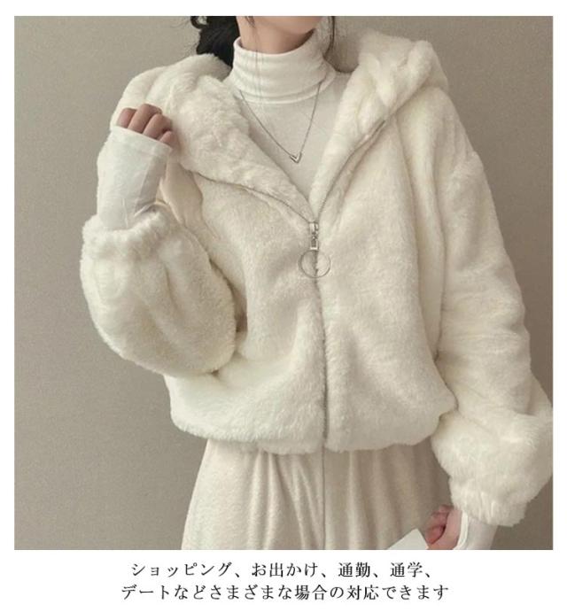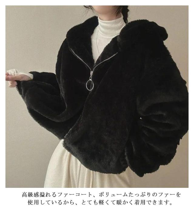 レディース ファーコート ボアパーカー ショート フード付き ケープ レディース ファーケープ ボアパーカー コート ジャケット もこもこ ブルゾン 秋冬コート 暖かい ファーコート 体型カバー 防寒 アウター カジュアル 成人式 花嫁 披露宴 プレゼント