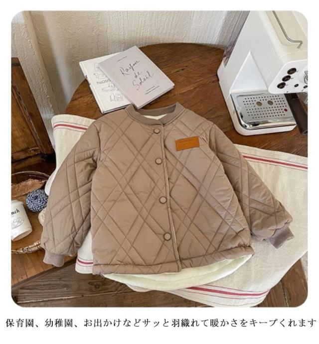 裏起毛 ノーカラー 中綿コート ジャケット キッズコート ボアコート アウター キルティングジャケット 女の子 韓国 男の子 長袖 キッズ ボアコート 上着 ブルゾン フードなし 裏フリース 厚手 暖かい 子供服 キッズ 秋冬 ジャンパー あったかアウター 防寒