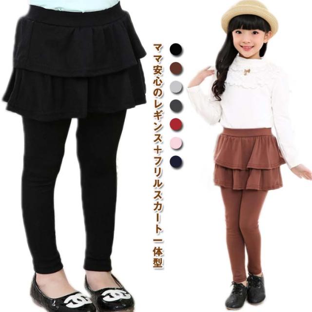 スカッツ 子供服 スカート付きレギンス ミニスカート 女の子 春秋 ストレッチ レギンス 可愛い キッズ ウエストゴム リラックス レギンス 無地 ガールズ 通園 通学 レギンス付きスカート 大きいサイズ 快適 ボトムス フリルスカート かわいい ギフト プレゼント