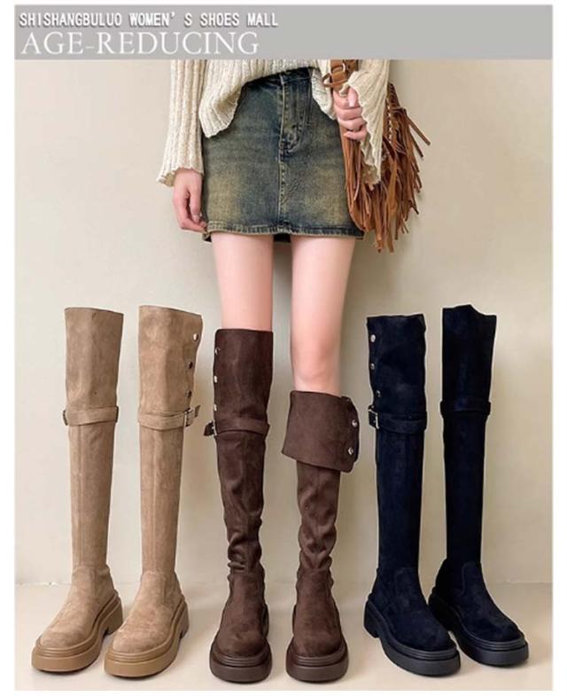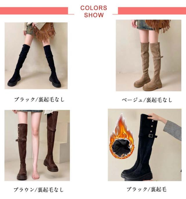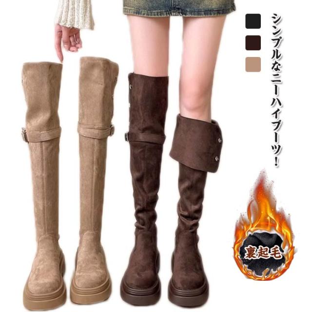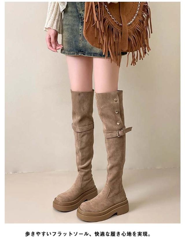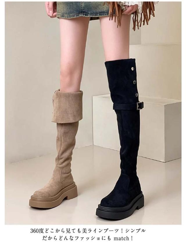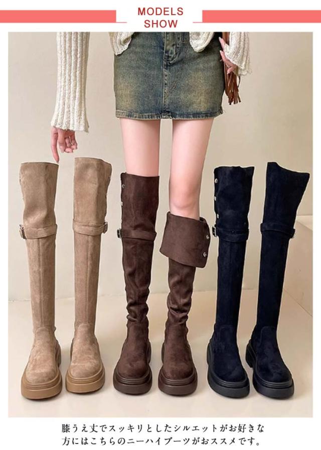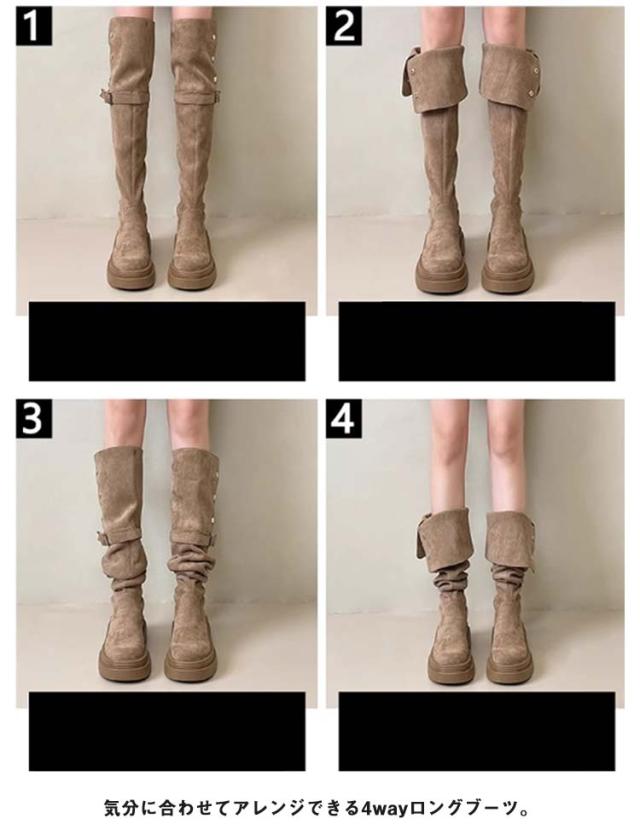 ニーハイ おしゃれ 膝上丈 レディース ロングブーツ 美脚 折り返し フラットソール 裏起毛 痛くない ブーツ ニーハイ ニーハイ 美脚 大人 歩きやすい 滑り止め 4wayブーツ サイドジップ 秋冬 大きいサイズ 靴 ブーツ 女性 ロング丈 カジュアル 通勤 通学 ギフト