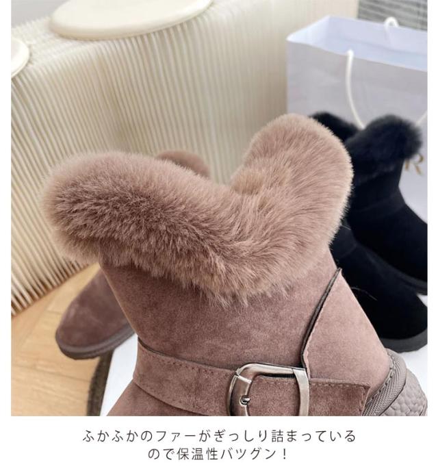 レディース ファー付き ムートンブーツ スノーブーツ ショートブーツ スノーブーツ 冬用 防寒靴 暖かい 厚底 送料無料