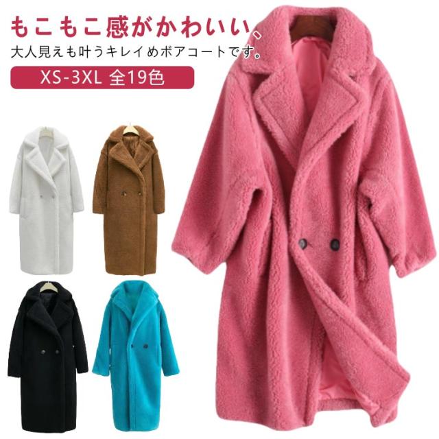 コート レディース 全19色 ロングコート 秋冬 ボア オーバーサイズ ボアコート アウター ロング ダブル チェスター XS-3XL もこもこ 襟 XS-3XL ボアブルゾン ボアジャケット ゆったり 暖か 大きいサイズ ロング丈 お出かけ 旅行 高級感