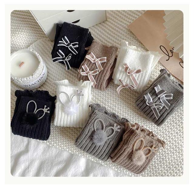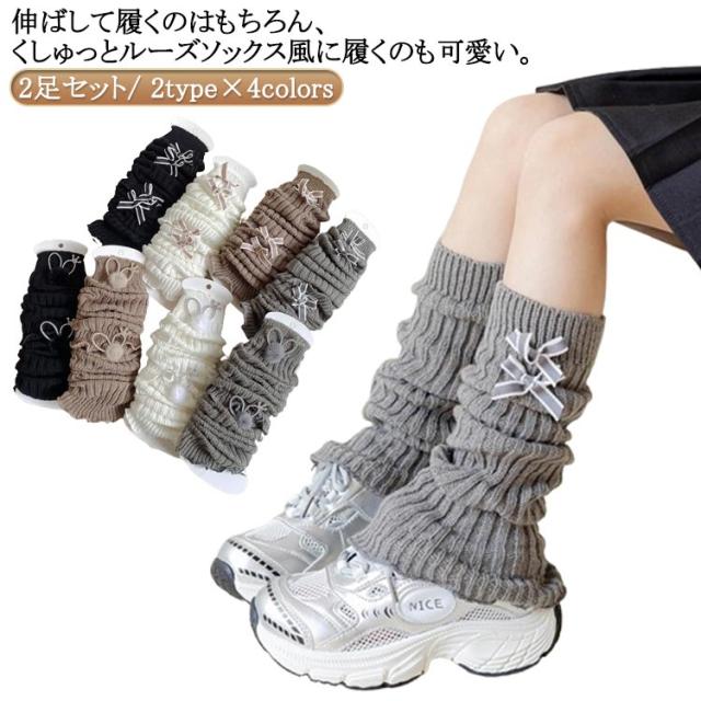 2足セット レッグウォーマー ロング キッズ 靴下 女の子 子供用ソックス 無地 リボン/兎耳の2タイプ 防寒 ルームソックス ヒップホップ ダンス衣装 小学生 中学生 ルーズソックス フットカバー お祭り まつり バレエ ダンス 足首ウォーマー 暖か 柔らかい 防寒