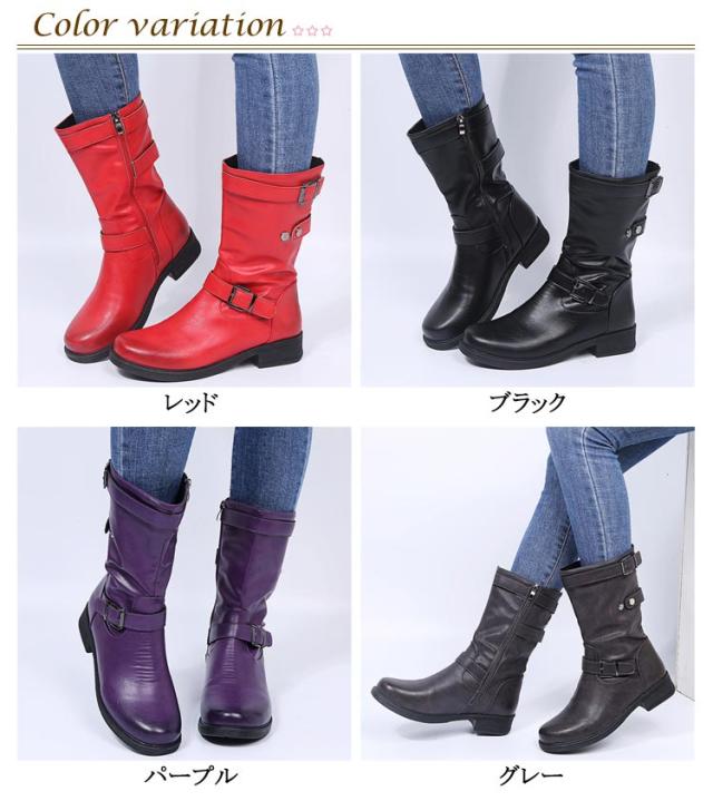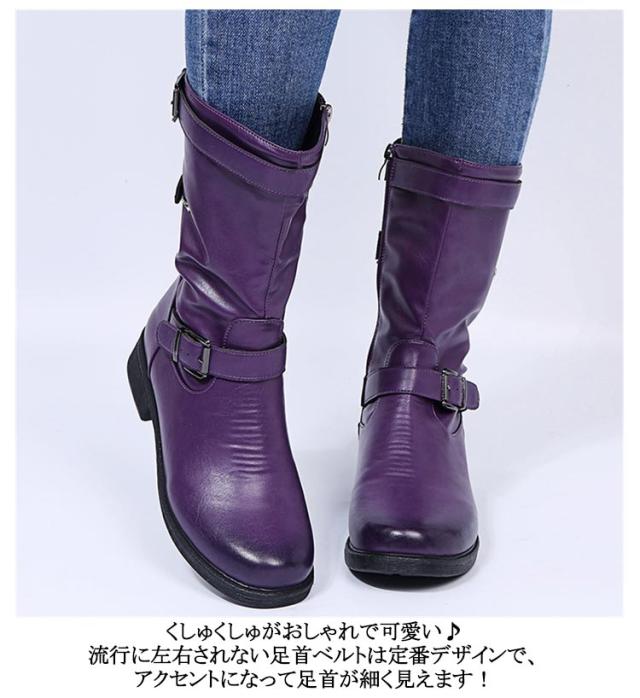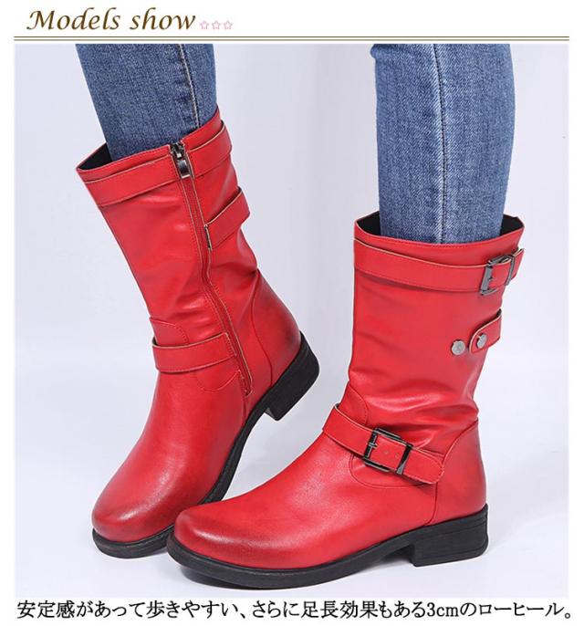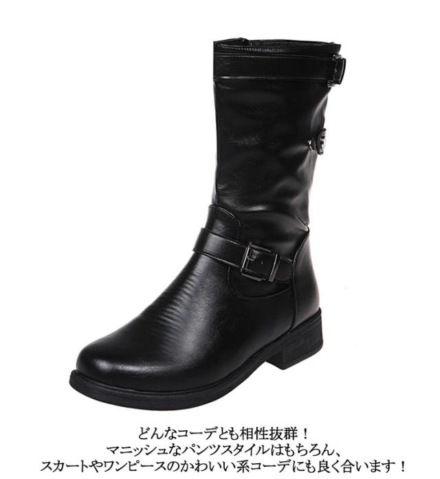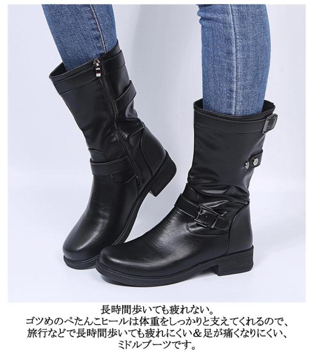 筒周り ミドルブーツ ショートブーツ 幅広 大きいサイズ エンジニアブーツ 対応ワイズ ゆったり 疲れにくい ミドル丈 エンジニアブーツ 厚底 レディース靴 ダブルベルト 履きやすい ブーツ ブーツ ラウンドトゥ ファスナー 靴 エンジニアブーツ ローヒール ぺたんこ