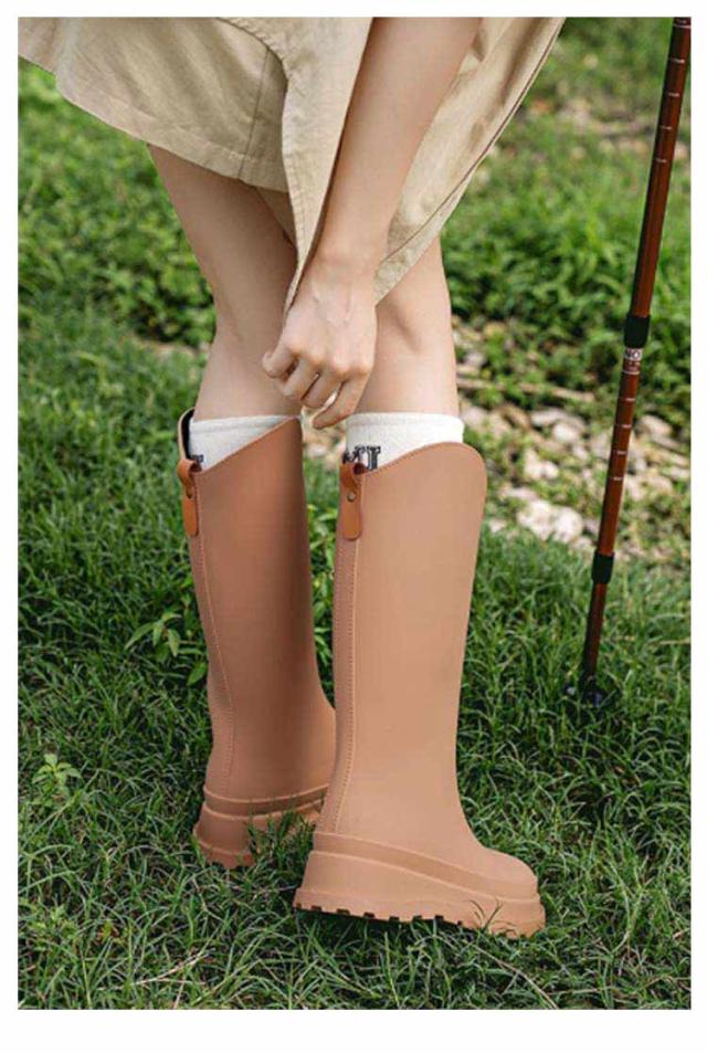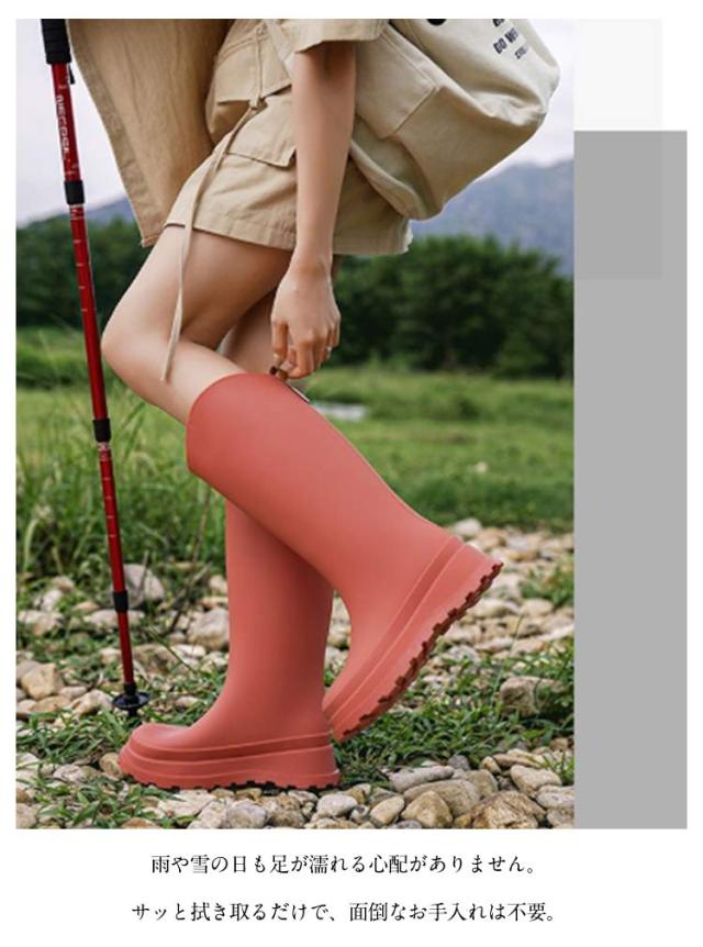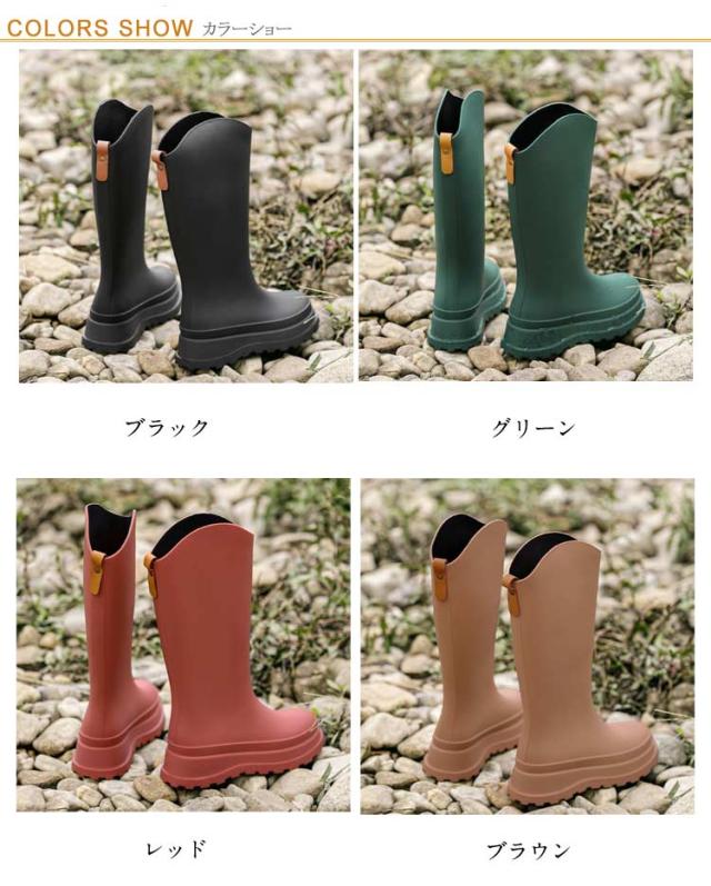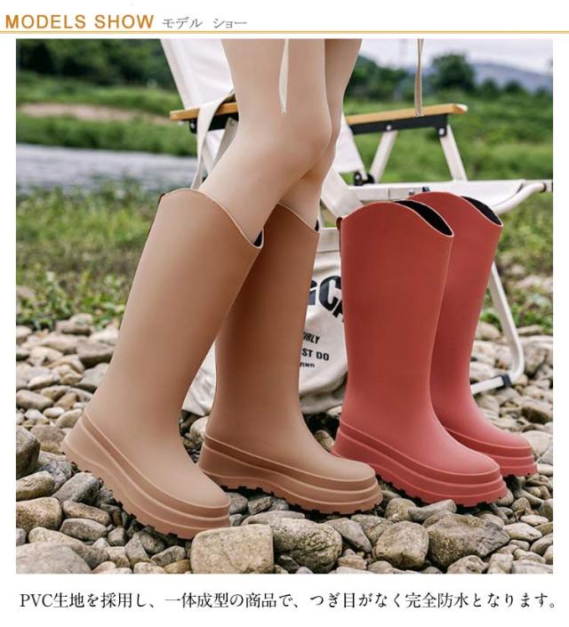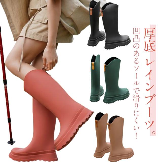 | 厚底 レインブーツ。 凹凸のあるソールで滑りにくい! PVC生地を採用し、一体成型の商品で、つぎ目がなく完全防水となります。 雨や雪の日も足が濡れる心配がありません。 サッと拭き取るだけで、面倒なお手入れは不要。 レインシューズとしては勿論、夏フェスやガーデニング・農作業・洗車時などウォーターシーンでも安心して履ける一足。 | |