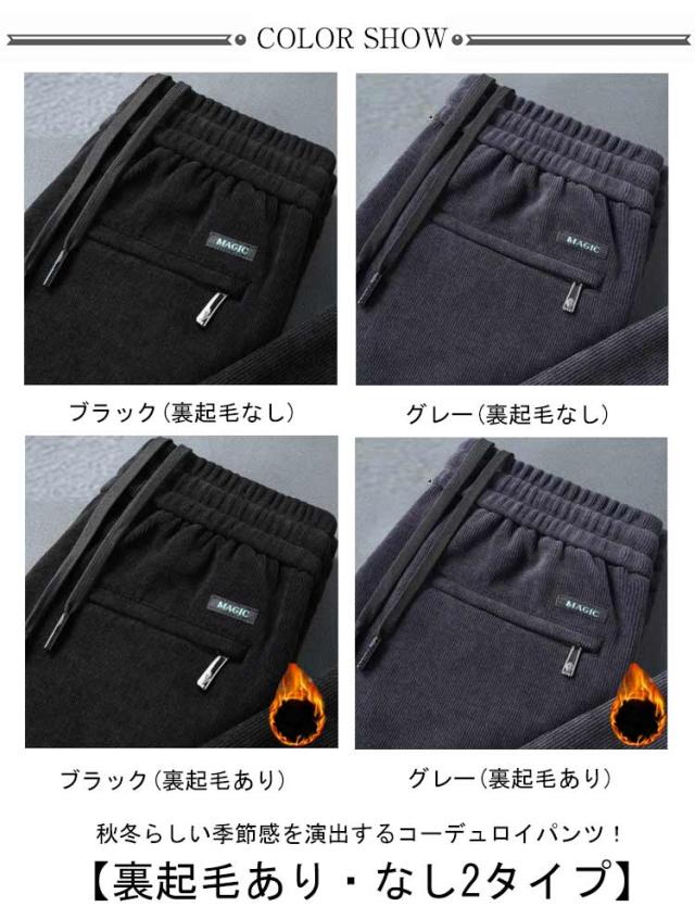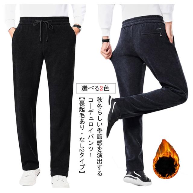 メンズ 裏起毛 コーデュロイパンツ コーデュロイ ワイドパンツ 裏ボア ストレートパンツ ストレッチパンツ ロング 裏起毛パンツ 秋冬 厚手 防寒 保温 長ズボン ウエストゴム 極暖 無地 シンプル カジュアル すっきり ボトムス 通勤 通学 送料無料