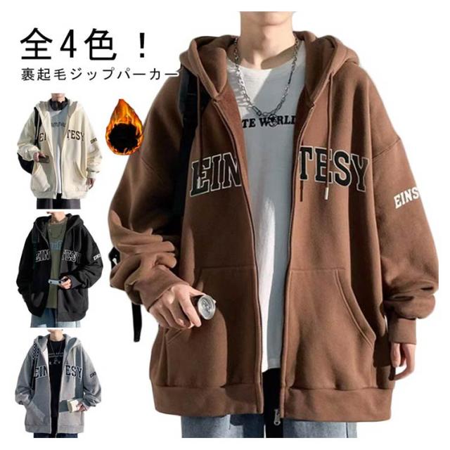 ジップパーカー メンズ 裹起毛 パーカー 秋冬 防寒 暖かい 保温 ジップアップパーカー あったか フルジップ アウター 上着 フード付き ゆったり おしゃれ 英字ロゴ 大きいサイズ 秋 冬 春 送料無料