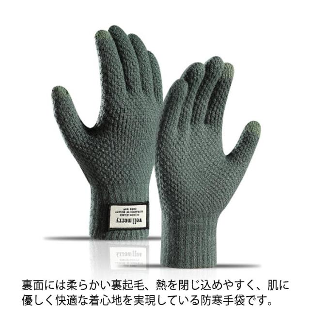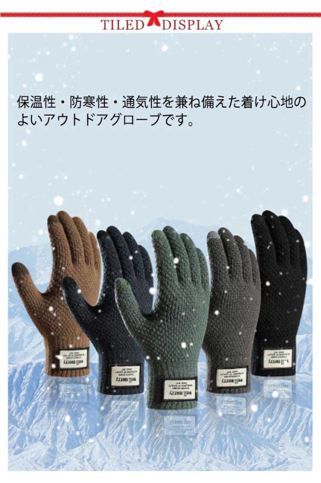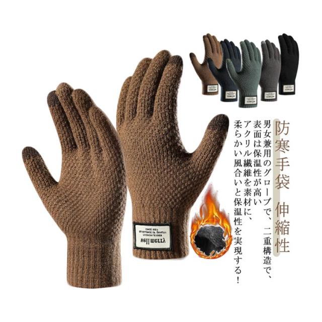 防寒グローブ 暖かい 冬 ふわふわ裏起毛 メンズ 手袋 防寒手袋 ニット手袋 ニットグローブ アウトドア手袋 伸縮性 メンズ用 スマホ対応 二重構造 自転車手袋 手にフィット スキー ランニング 通勤