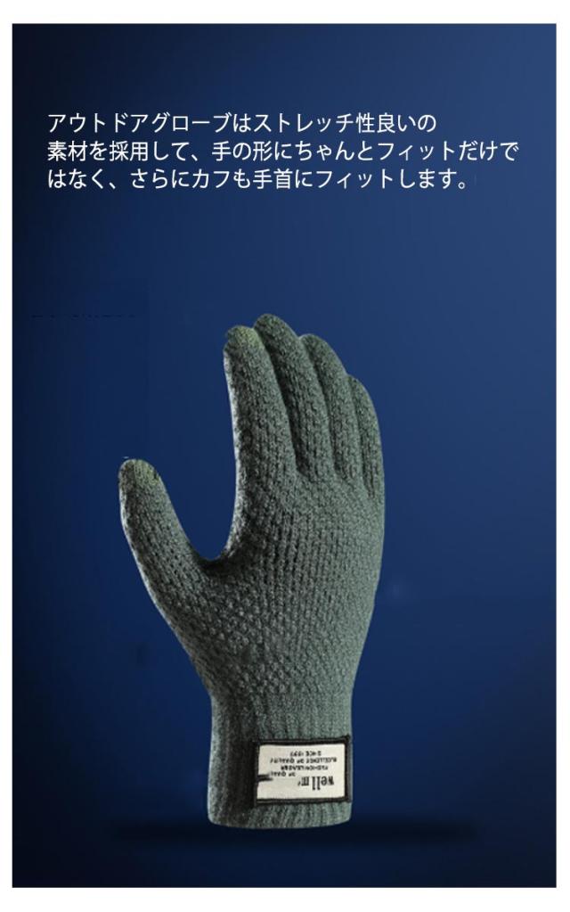 | 男女兼用のグローブで、二重構造で、表面は保温性が高いアクリル繊維を素材に、柔らかい風合いと保温性を実現する! 裏面には柔らかい裏起毛、熱を閉じ込めやすく、肌に優しく快適な着心地を実現している防寒手袋です。 アウトドアグローブはストレッチ性良いの素材を採用して、手の形にちゃんとフィットだけではなく、さらにカフも手首にフィットします。 締め付け感なしで外気が入り込むことなく、快適に保温されます。 人指し指や親指の先端部分に導電性のある繊維が採用され、手袋を外さないてもでスマートフォンやタブレットなどのタッチパネルが操作できます。 保温性・防寒性・通気性を兼ね備えた着け心地のよいアウトドアグローブです。 | |
