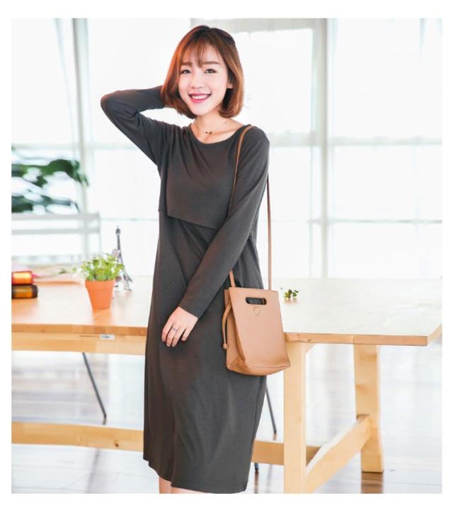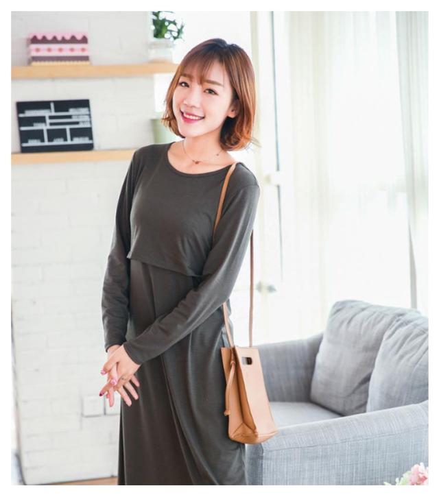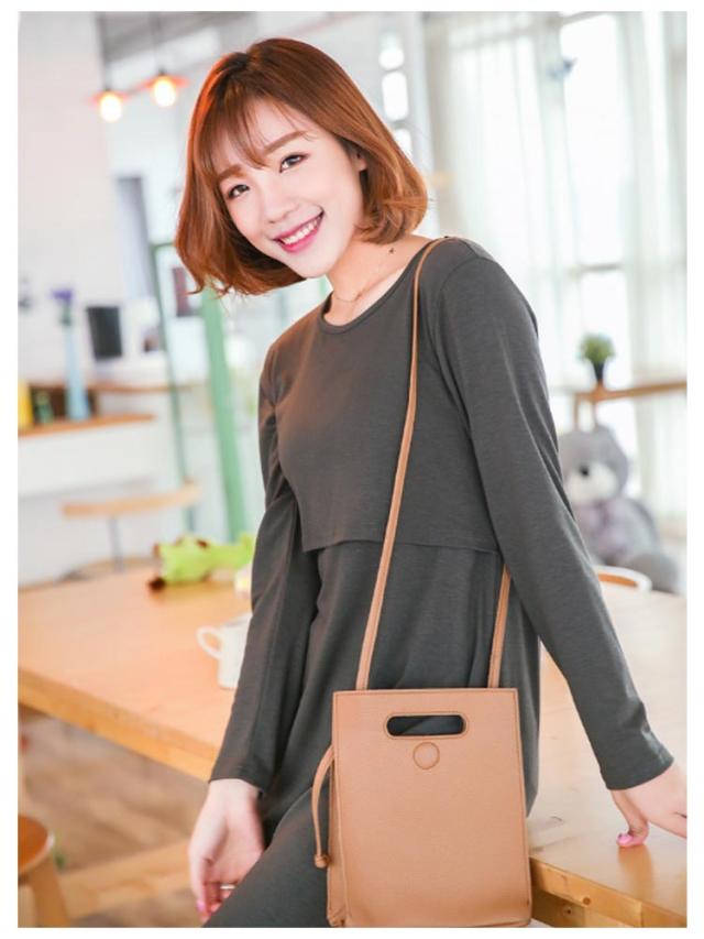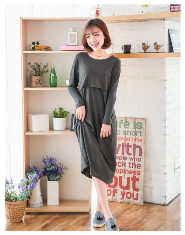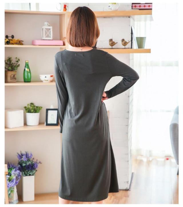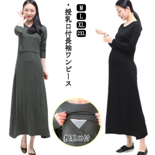 カットソー 授乳 ワンピース 長袖 マタニティ インナー 丸首 妊娠 クルーネック ママ 授乳服 授乳服 産前産後 マタニティパジャマ ルームウェア ワンピ シンプル かわいい 春 夏