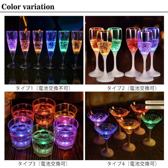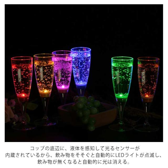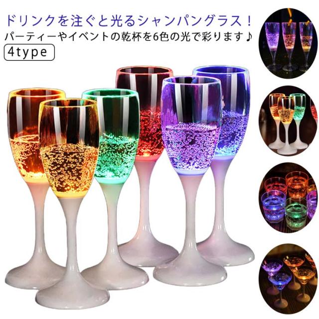 4タイプ 光るシャンパングラス 150ml 6色 6脚セット 光るグラス センサーネオングラス パーティー 光る LED グラス シャンパングラス セット プラスチック 液体感知 シャンパンフルート パーティー bar ホームパーティ 誕生日 クリスマス バーナイトクラブ イベント