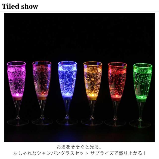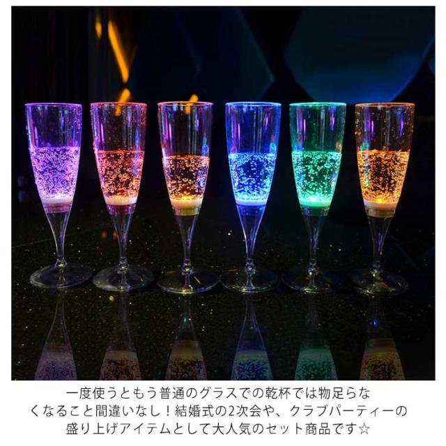| ドリンクを注ぐと光るシャンパングラス!パーティーやイベントの乾杯を6色の光で彩ります♪ お酒をそそぐと光る。おしゃれなシャンパングラスセット サプライズで盛り上がる! コップの底辺に、液体を感知して光るセンサーが内蔵されているから、飲み物をそそぐと自動的にLEDライトが点滅し、飲み物が無くなると自動的に光は消える。 シャンパンの気泡がLEDの光で美しく輝き、一度使うともう手放さない!パーティー、クラブ、bar、イベント、ホームパーティ、誕生日、歓迎会、など各種イベントの盛り上げアイテムとして大人気。 食品グレードのプラスチックを付けられ、安全・安心にお使いいただけます。 一度使うともう普通のグラスでの乾杯では物足らなくなること間違いなし!結婚式の2次会や、クラブパーティーの盛り上げアイテムとして大人気のセット商品です☆ | |