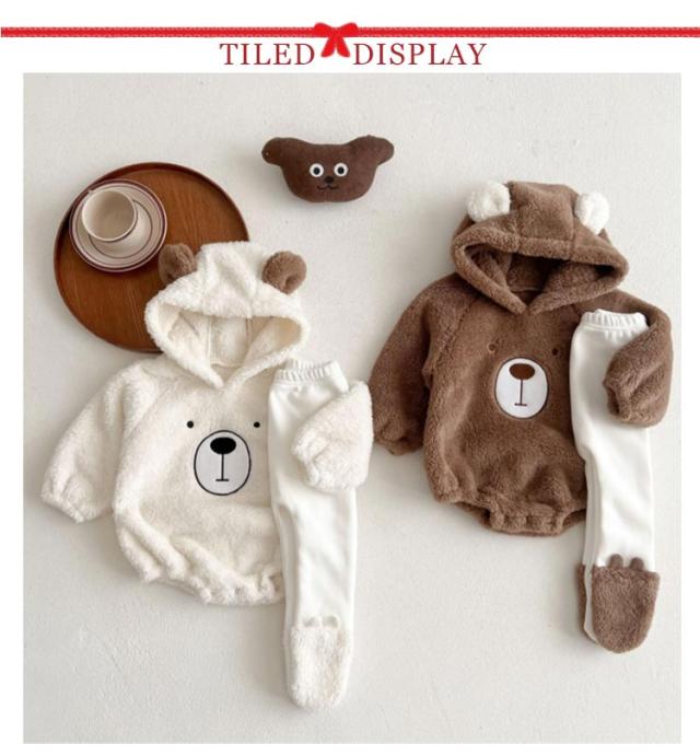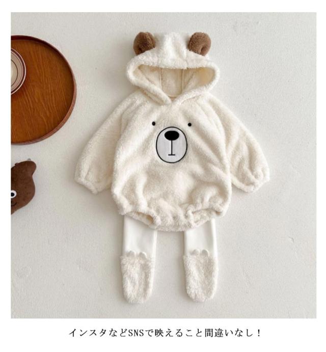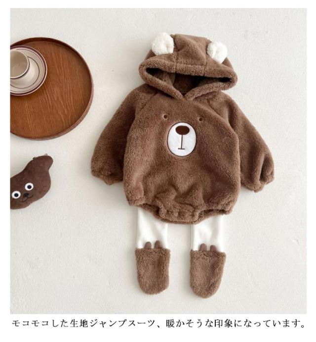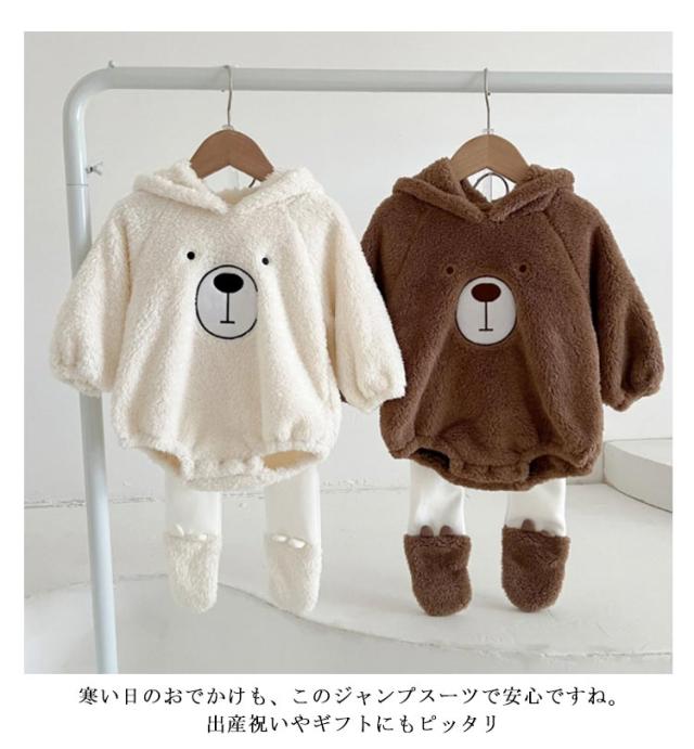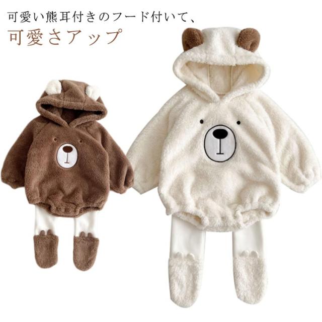 くまちゃん 暖かい ロンパース 長袖 ジャケット ベビー服 股下スナップボタン レギンス くま耳 新生児服 くまちゃん 熊耳 カバーオール 男の子 女の子 もこもこ ジャンプスーツ フランネル パジャマ 可愛い 赤ちゃん 着ぐるみ 冬服 幼児服