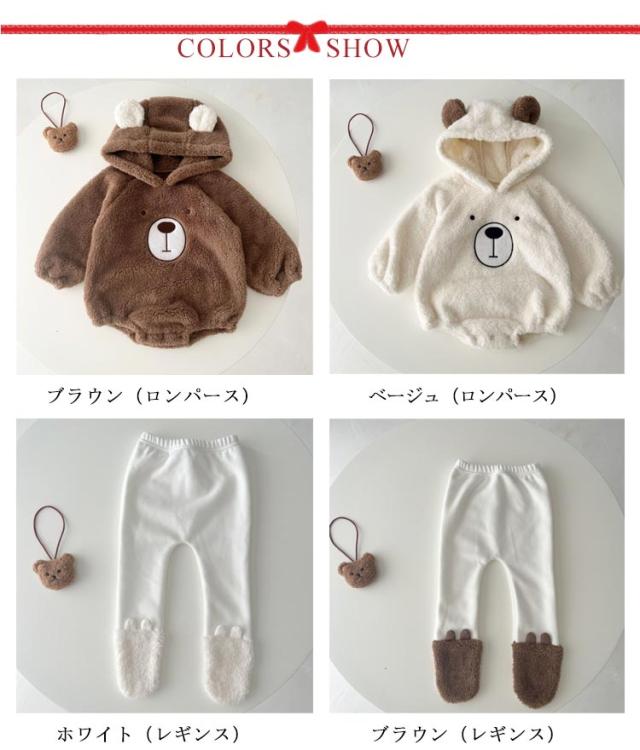 | 色 | ブラウン(ロンパース) ベージュ(ロンパース) ホワイト(レギンス) ブラウン(レギンス) |