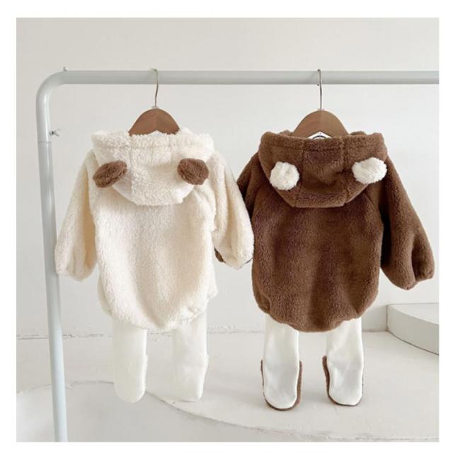 | 可愛い熊耳付きのフード付いて、可愛さアップ 思わず抱きしめたくなっちゃう~もこもこベビー長袖カバーオール。 インスタなどSNSで映えること間違いなし! フロントは股下から足元まで開くのでオムツの取替えも楽々。 モコモコした生地ジャンプスーツ、暖かそうな印象になっています。 寒い日のおでかけも、このジャンプスーツで安心ですね。出産祝いやギフトにもピッタリ | |