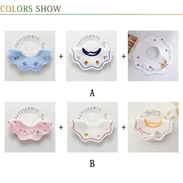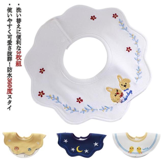スタイ 360° よだれかけ よだれカバー コットン 刺しゅう 刺繍 スタイ 3枚セット 赤ちゃん 360度 ビブ ベビー 女の子 綿 男の子 かわいい おしゃれ