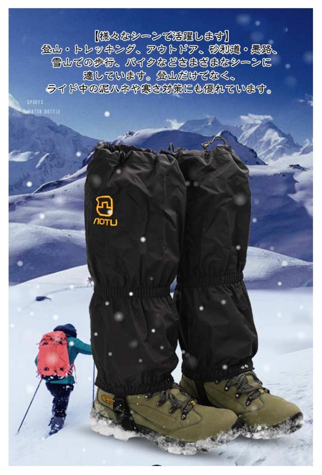 | 【登山用ゲイター】【裏起毛】【防水・防寒】 雨、雪、泥などからズボンや靴が濡れるのを防ぐ撥水性ゲイターです。(ロングスパッツ) ナイロンオックスフォード生地を採用し、足をドライに保ちながら水や雪、低木にも耐えられるように設計されており、耐久性も備えています。 長さが約40cmあるので膝下までカバーできます。 幅広の強力マジックテープで簡単に着脱ができます。裏地もついているため保温性もあります。 【様々なシーンで活躍します】登山・トレッキング、アウトドア、砂利道・悪路、雪山での歩行、バイクなどさまざまなシーンに適しています。登山だけでなく、ライド中の泥ハネや寒さ対策にも優れています。 | |