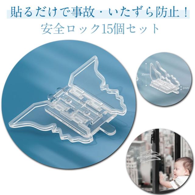 安全ロック 15個入り 窓 網戸 ベビーガード 防犯 ドア ストッパー 窓ストッパー ロック 取り付け簡単 子供 幼児 赤ちゃん ペット いたずら防止 窓 引き戸 ベランダ 使用簡単 ベビー ワンタッチ セーフティロック いたずら防止 室内 便利グッズ クリア 送料無料