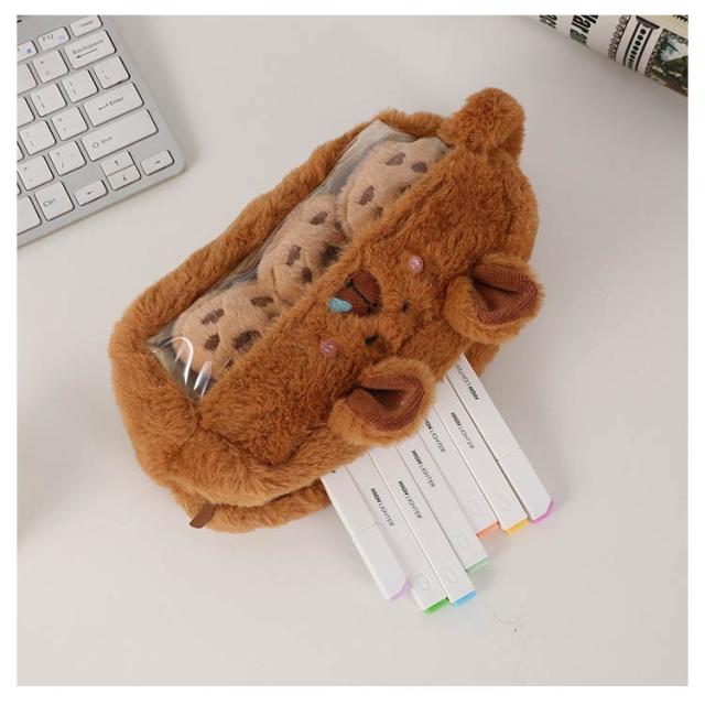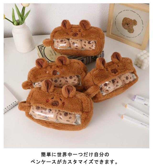 カピバラ 痛バ 筆箱 推し筆箱 缶バッジ入れ ペンケース もこもこ ふわふわ 筆入れ 可愛い 耳付き ペンケース 表情 取っ手 顔 推し 面白い 中学生 大容量 個性的 小学生 高校生 ペンケース 女の子 男の子 プレゼント 贈り物 ギフト