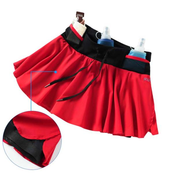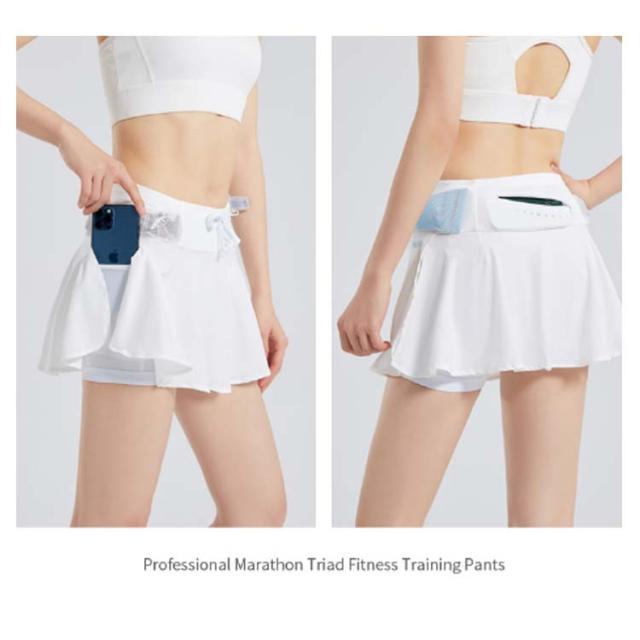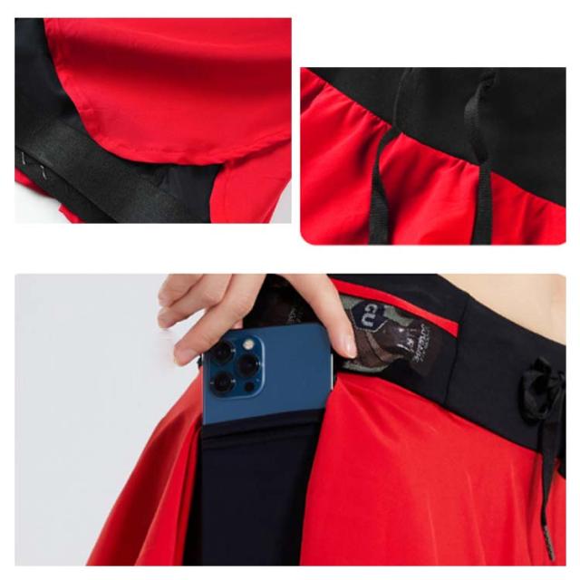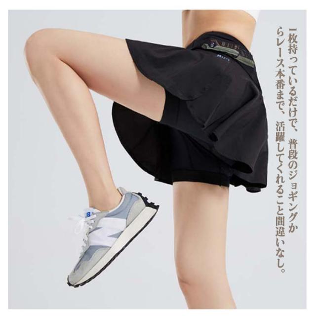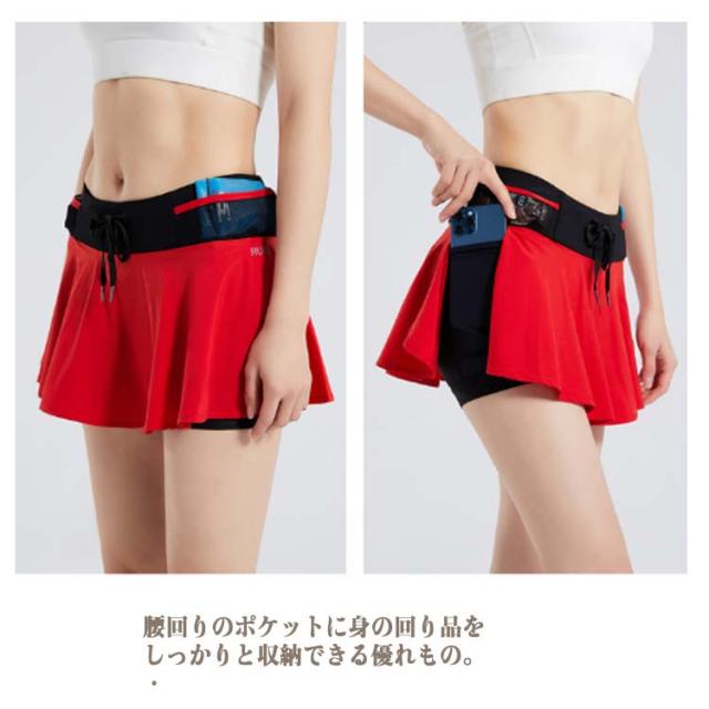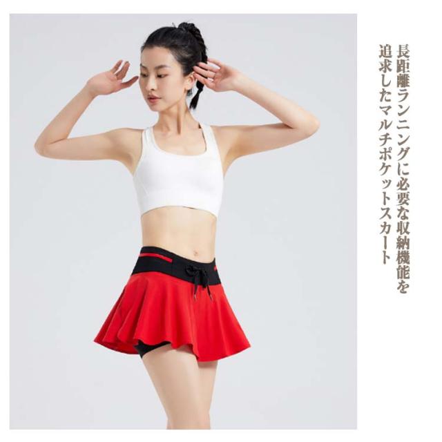 フレアスカート ランニングパンツ ポケット スカート ウエストポケット付き スポーツウェア ウエストポーチ一体型 ランニングパンツ インナーパンツ付き 速乾性 通気性 トレーニングウェア