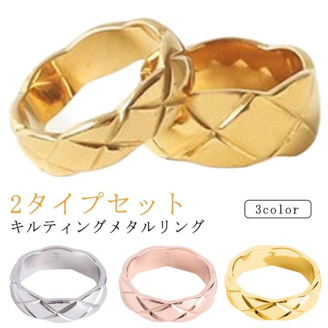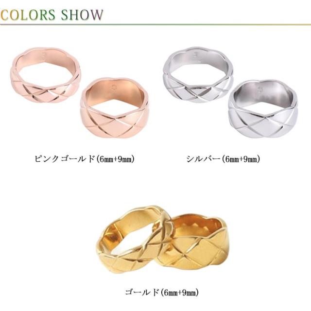 重ね付け リング スリム キルティング 指輪 ワイド ピンクゴールド メンズ リング 金色 18K ステンレス 男性 レディース 銀色 女性 おしゃれ かわいい フォーマル オフィス 幅広 幅広
