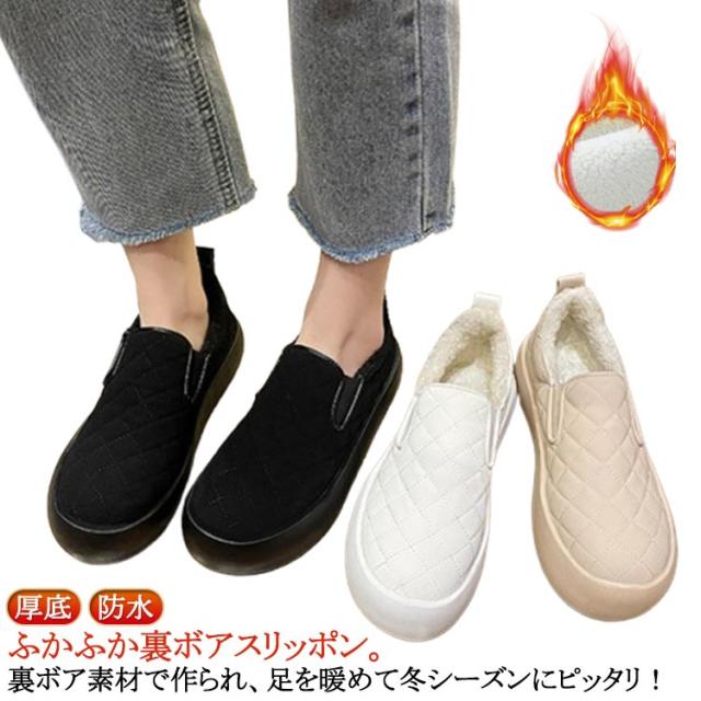 スリッポン レディース 裏起毛 スニーカー 冬 ムートンシューズ ボアスリッポン 通学靴 もこもこ スリッポン 革靴 厚底 暖かい 防水 カジュアルシューズ 秋冬靴 サイドゴア スニーカー 靴 女性 暖か 保暖 保温 綿靴 防滑 痛くない