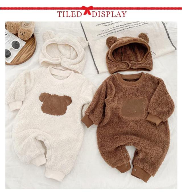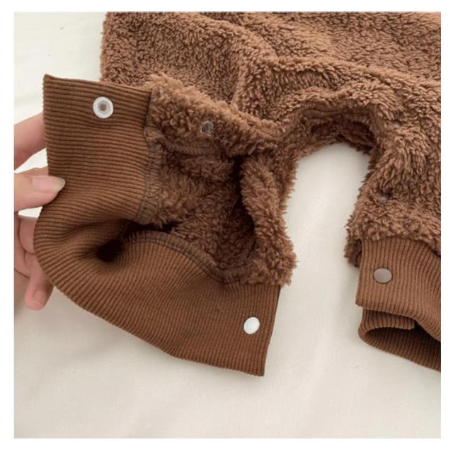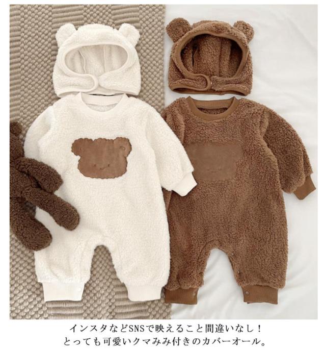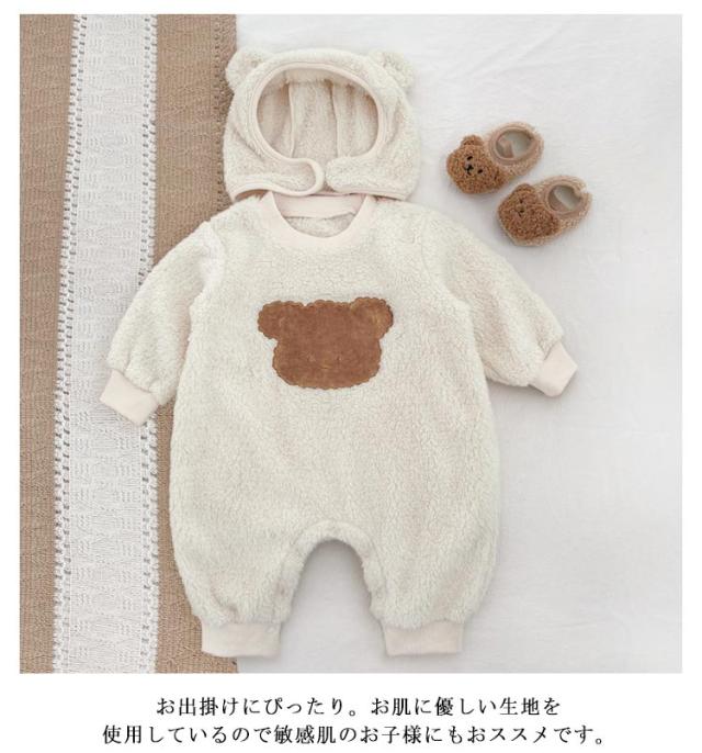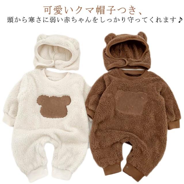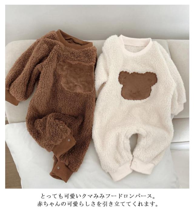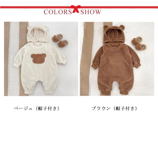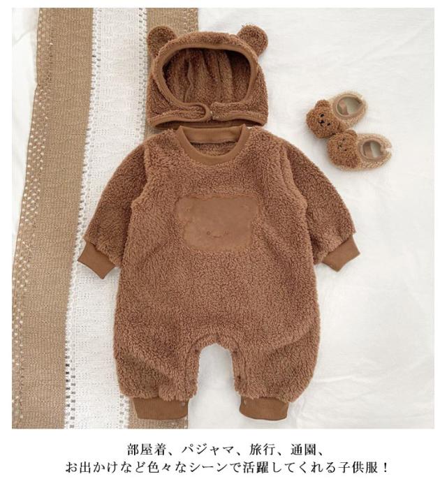 暖かい 熊 くまちゃん ロンパース 熊耳 着ぐるみ ベビー キッズ 赤ちゃん カバーオール 帽子付き かわいい ふわふわ 着ぐるみ ジャンプスーツ 動物 熊 ベビー カバーオール ベビー服 ジャンプスーツ くま帽子 可愛い 防寒 暖かい