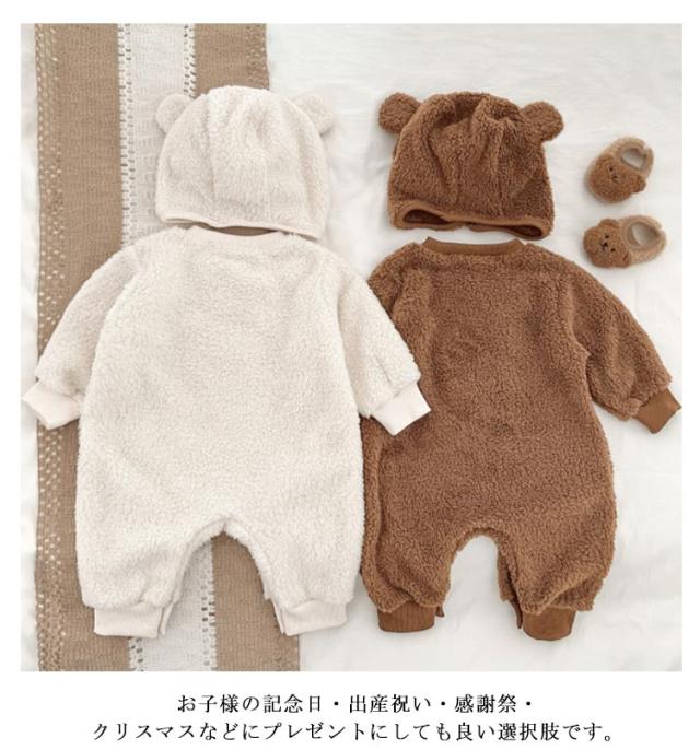| 可愛いクマ帽子つき、頭から寒さに弱い赤ちゃんをしっかり守ってくれます♪ インスタなどSNSで映えること間違いなし!とっても可愛いクマみみ付きのカバーオール。 とっても可愛いクマみみフードロンパース。赤ちゃんの可愛らしさを引き立ててくれます。 お出掛けにぴったり。お肌に優しい生地を使用しているので敏感肌のお子様にもおススメです。 部屋着、パジャマ、旅行、通園、お出かけなど色々なシーンで活躍してくれる子供服!お子様の記念日・出産祝い・感謝祭・クリスマスなどにプレゼントにしても良い選択肢です。 | |