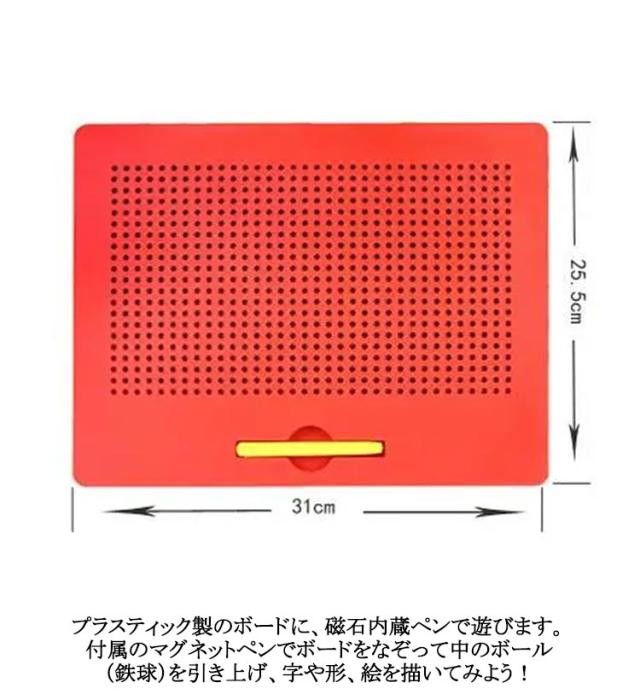 | 子どもの知育玩具男の子と女の子を問わず、だれでも簡単におえがきを楽しめる子供のおもちゃ。子供たちは想像力を使って絵、形、文字、数字を描くことができます! プラスティック製のボードに、磁石内蔵ペンで遊びます。 付属のマグネットペンでボードをなぞって中のボール(鉄球)を引き上げ、字や形、絵を描いてみよう! 金属球は磁気スタイラスペンで表面に引き付けられ、ペンや指でボールを消してやり直すことができます。 大人も子供も楽しく遊べる知育玩具のマグネットタブレットです。 周りやお洋服を汚さずに遊べるので、安心です◎ 何度でも描くことができて楽しいです♪ お誕生日プレゼントやクリスマスプレゼント、入学祝い・卒業祝いにも最適です。 | |