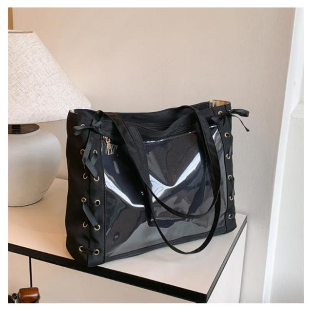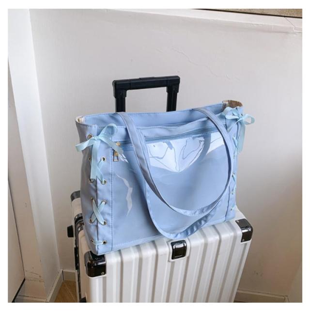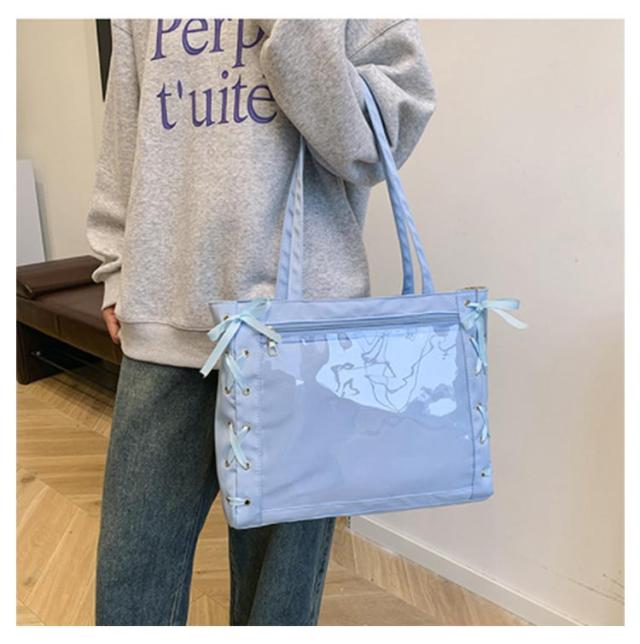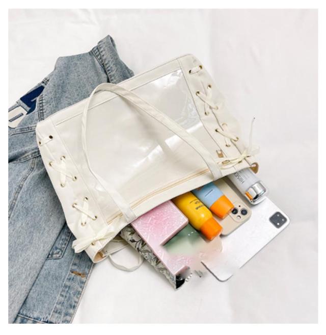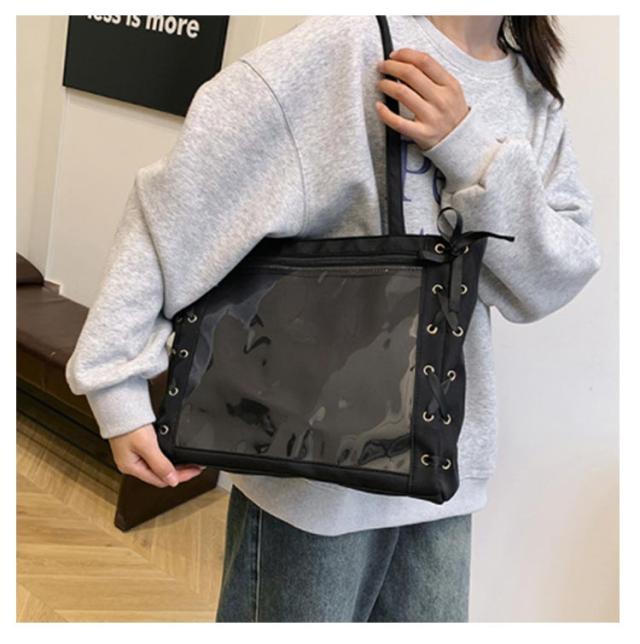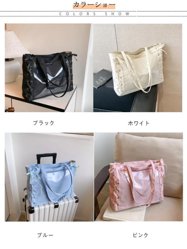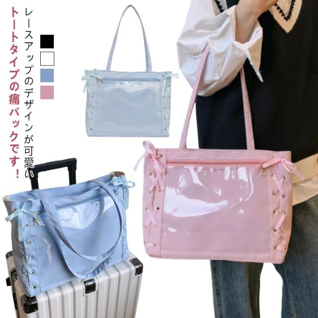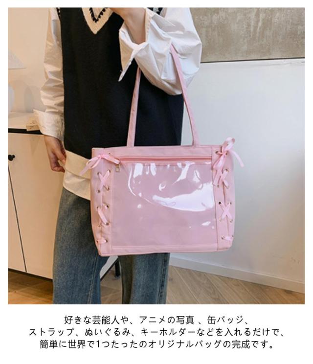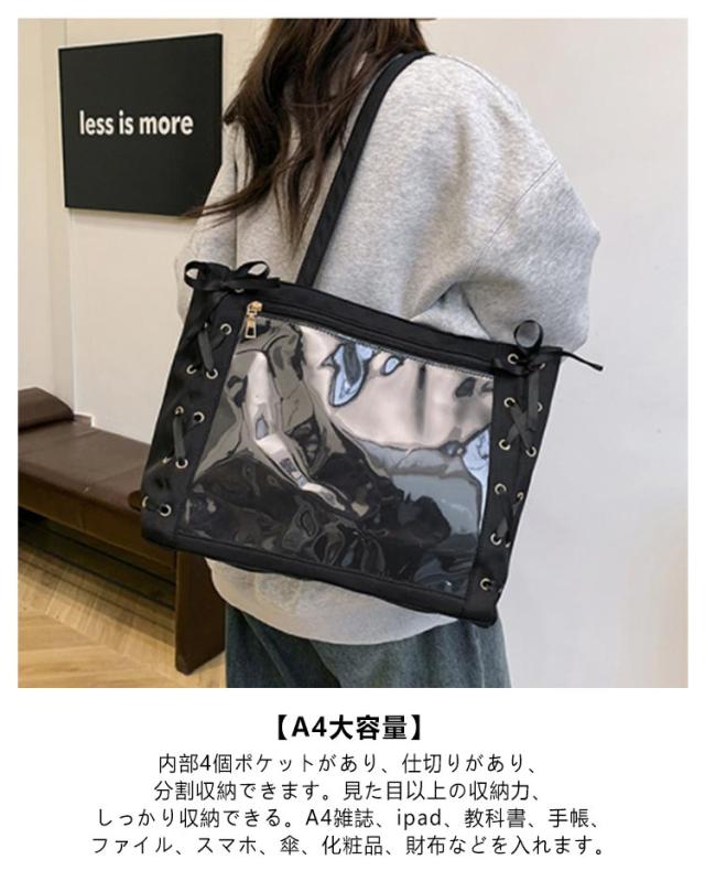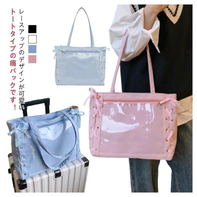 痛バッグ a4 ショルダー レースアップ ぬいぐるみ 透明 クリア バッグ 推し活 バッグ 痛バ ショルダーバッグ トート 2way おしゃれ ぬいポーチ 缶バッジ 見せる 大容量 見せバッグ 軽い 軽量 展示 持ち歩き 推し 推しバッグ 推し活バッグ イベント