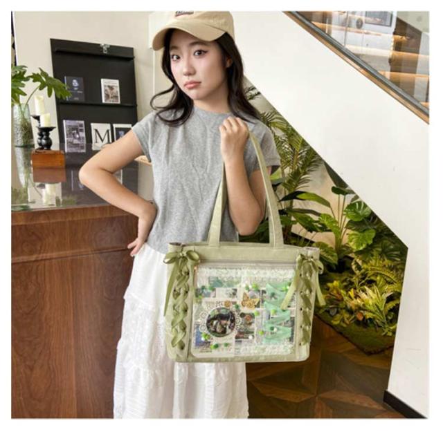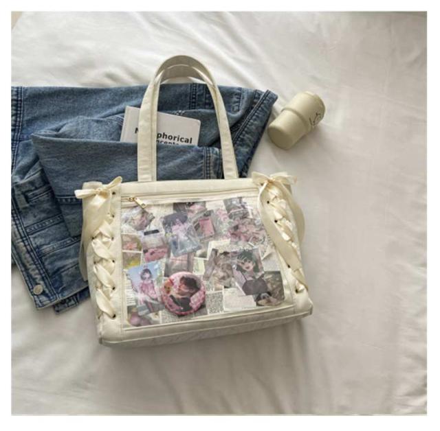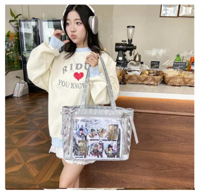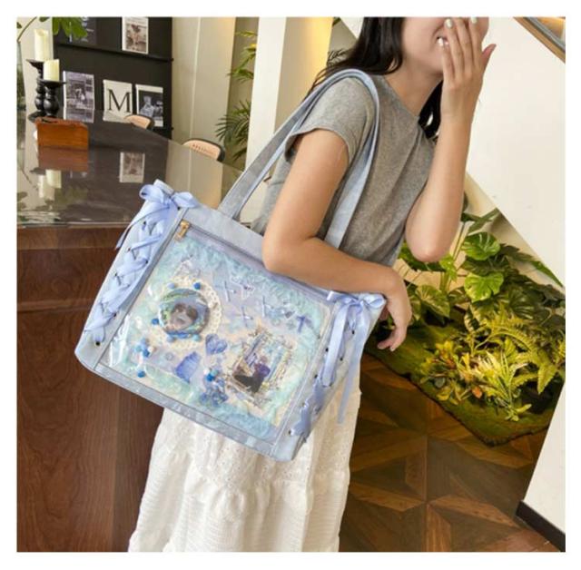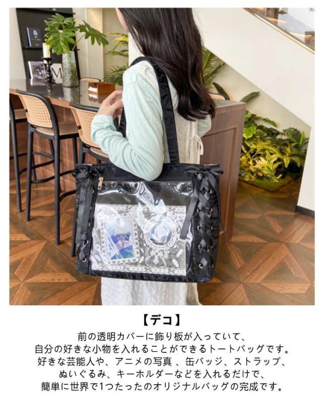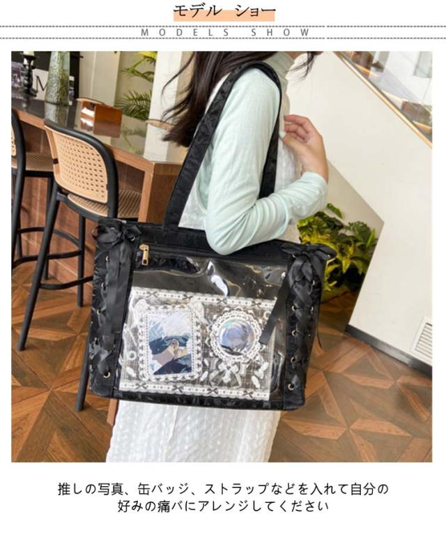 痛バッグ a4 ショルダー レースアップ ぬいぐるみ 透明 クリア バッグ 推し活 バッグ 痛バ ショルダーバッグ トート 2way おしゃれ ぬいポーチ 缶バッジ 見せる 大容量 見せバッグ 軽い 軽量 展示 持ち歩き 推し 推しバッグ 推し活バッグ イベント