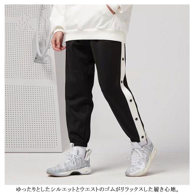 バスケットパンツ バスケットボールパンツ キッズ ジュニア 裾ボタン バスケパンツ サイドライン スナップボタン ジャージパンツ 長ズボン ロングパンツ ジャージ 下 男の子 女の子 練習用パンツ 110 120 130 140 150 160 170cm 送料無料