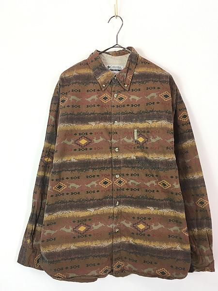 古着 Columbia ネイティブ アニマル ボーダー 総柄 BD シャツ L 古着