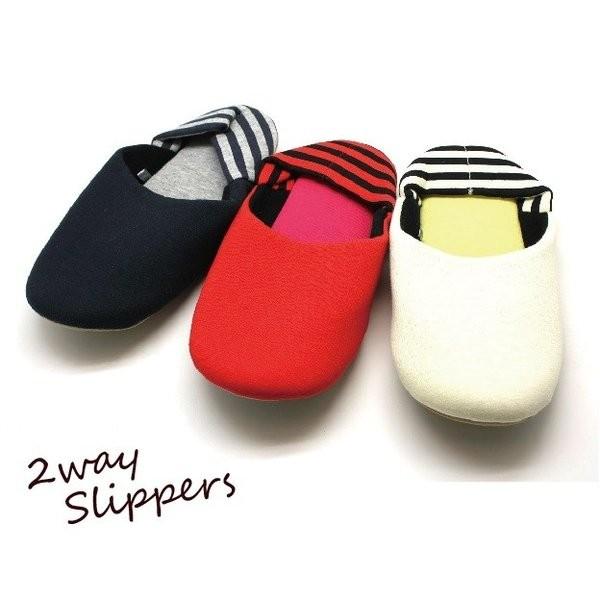 シーンに合わせて使い分けができる2ウェイ仕様のルームシューズです。